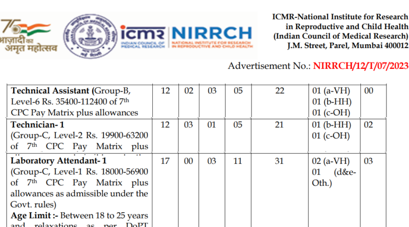 ICMR NIRRCH Mumbai TA & Laboratory Attendant recruitment 2023: ICMR NIRRCH Mumbai TA & Laboratory Attendant recruitment has Announced Notification for the recruitment for TA & Laboratory Attendant recruitment other Vacancy. Those Candidates who are interested in the vacancy details & completed all eligibility criteria can read the Notification & Apply Online. ICMR NIRRCH Mumbai Recruitment online form apply before 05-11-2023. ITI, Diploma, 12th, BSC, B.Tech candidates are eligible to apply ICMR NIRRCH Recruitment 2023.