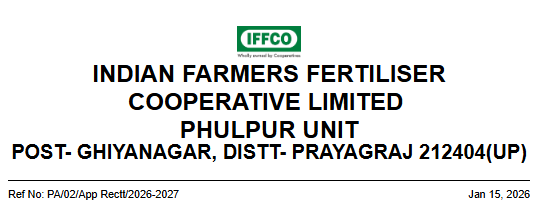 IFFCO Phulpur Unit, Post-Ghiyanagar, Distt-Prayagraj 212404(UP) invites application for Apprenticeship Training as per The Apprentices Act, 1961 and rules made thereunder.