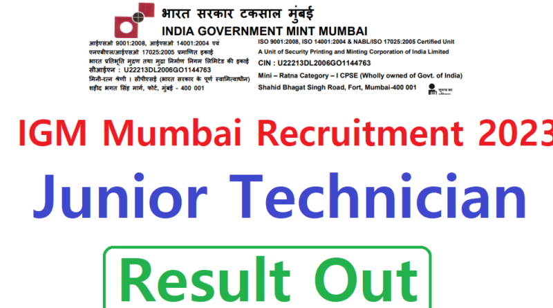 IGM Mumbai Jr. Technician Result Notice 2023