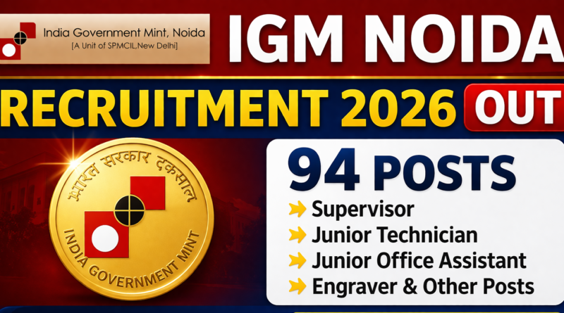 India Government Mint, Noida (IGMN) जो कि Security Printing and Minting Corporation of India Ltd. (SPMCIL) की एक Unit है और Ministry of Finance, Government of India के अंतर्गत आती है — उसने IGMN-01/2026 Advertisement No. के तहत 94 विभिन्न पदों पर Online Applications आमंत्रित की हैं।
