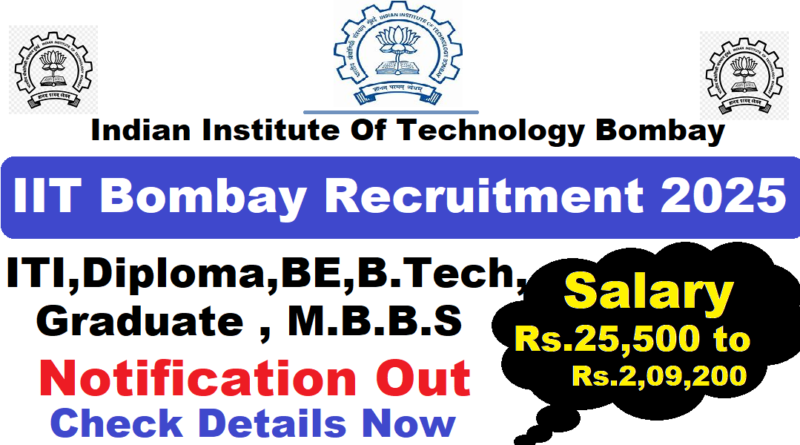 IIT Bombay Recruitment 2025, ITI, Diploma, BE, BTech Latest Vacancy 2025