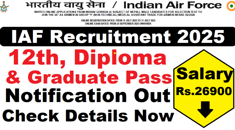 Indian Air Force Recruitment 2025 : Indian Air Force (IAF) की ओर से Airmen Posts पर Recruitment निकली है जिसका Online form 11/07/2025 से शुरू है | Indian Air Force Recruitment 2025 Online form 31/07/2025 तक भरा जायेगा | 12th & Diploma candidates Indian Air Force Recruitment 2025 online form भर सकता है | Interested and eligible candidates Indian Air Force Recruitment 2025 form भर सकते हैं | Indian Air Force Recruitment Full Notification निचे दिया गया हैI Indian Air Force Recruitment Apply Link निचे दिया गया है I