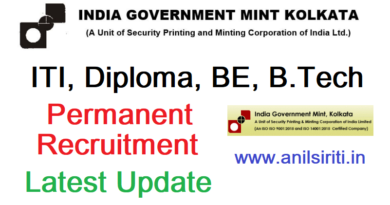 Indian Government Mint Jr. Technician Recruitment 2022, ITI, Diploma, B.E., B.Tech Latest vacancy 2022