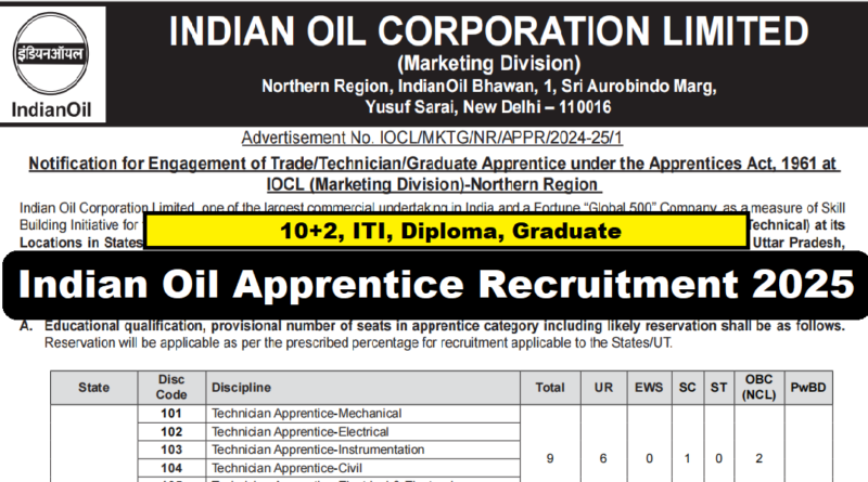 Indian Oil Apprentice Recruitment Vacancy 2025