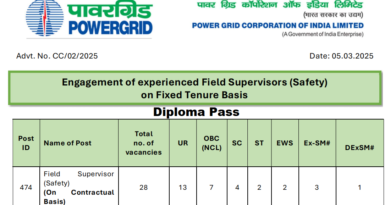 Technician Apprentice : –3 years regular full time Diploma in Mechanical/Electrical/instrumentation/Civil/Electrical & Electronics/Electronics Engineering with minimum 50% marks in aggregate for General, EWS and OBC-NCL& 45% in case of SC/ST/PwBD candidates for reserved positions from a Institute/University recognized by AICTE/UGC.