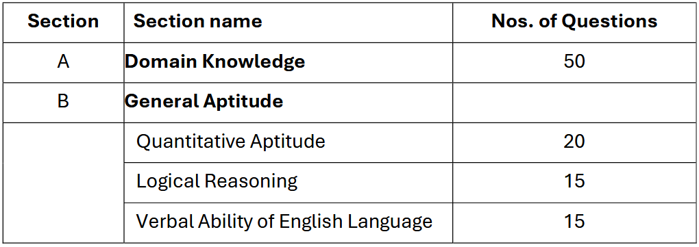 - The test shall comprise of objective Multiple-Choice type questions and shall be for a total duration of 150 minutes. 20 minutes per hour of ‘compensatory time’ in Computer Based Test shall be given to PwBD candidates who are allowed to use scribe as per Govt. guidelines.