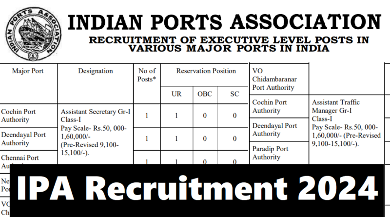 IPA Recruitment 2024, Indian Ports latest Vacancy 2024, 31/01/2025 Last Date