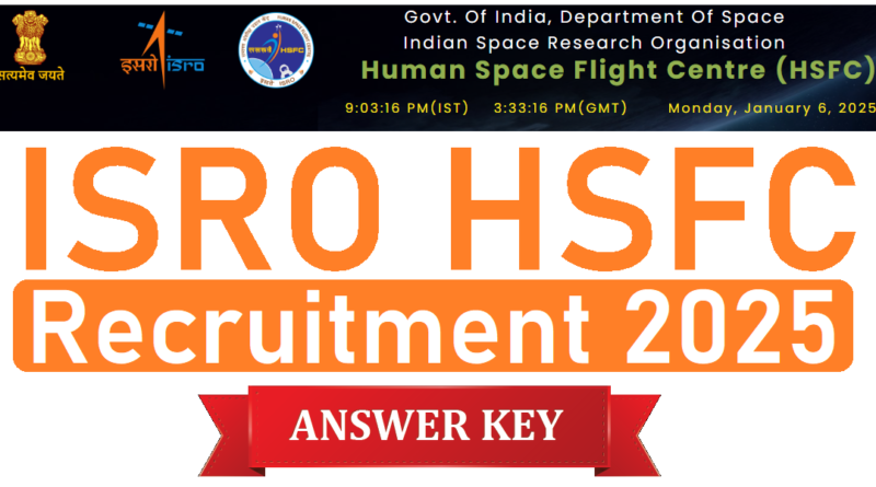 - ISRO HSFC Answer key 2025 official link 09-01-2025 09 Hours 30 Minutes को जारी किया जायेगा |