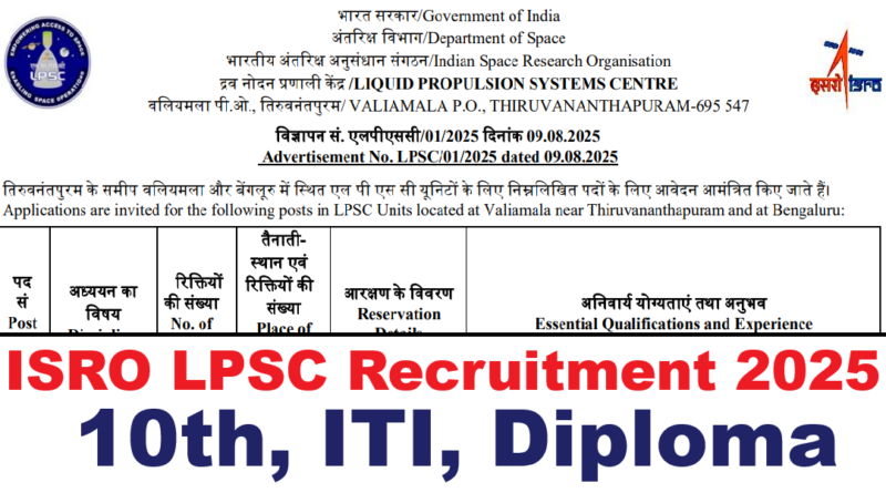 ISRO LPSC Recruitment 2025, 10th, ITI, Diploma, 27-08-2025 Last Date