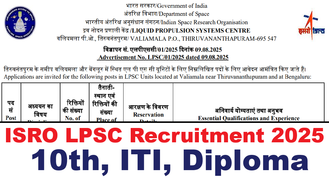 ISRO LPSC Recruitment 2025, 10th, ITI, Diploma, 27-08-2025 Last Date