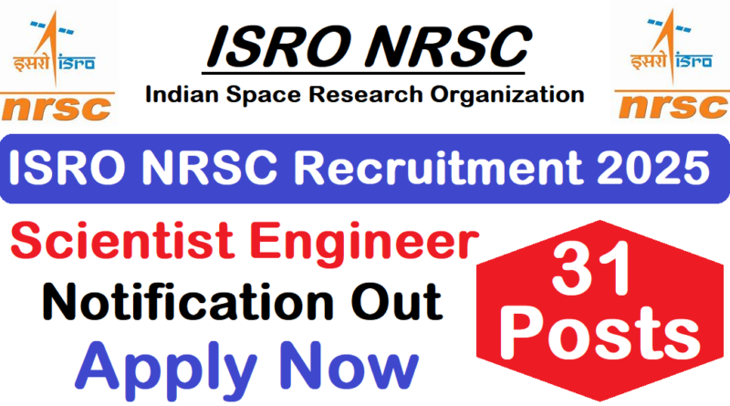 ISRO NRSC Recruitment 2025 : The Indian Space Research Organization (ISRO) की ओर से 31 Posts पर Recruitment निकली है जिसका Online form 10/05/2025 से शुरू है | ISRO NRSC Recruitment 2025Online form 30/05/2025 तक भरा जायेगा | Graduate & Post Graduate Pass in various candidates ISRO NRSC Recruitment 2025 online form भर सकता है | Interested and eligible candidates ISRO NRSC Recruitment 2025 form भर सकते हैं | ISRO NRSC Recruitment Full Notification निचे दिया गया हैI ISRO NRSC Recruitment 2025 Apply Link निचे दिया गया है I