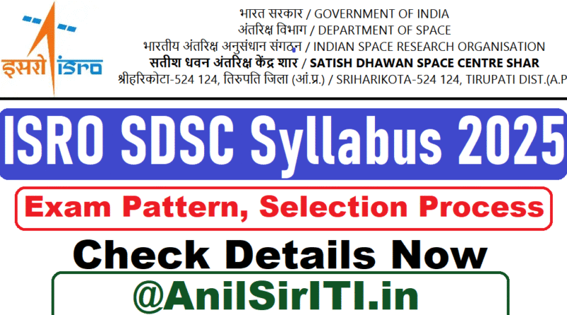 ISRO SDSC Syllabus 2025 : Indian Space Research Organisation – Satish Dhawan Space Centre की ओर से 144 Posts पर Recruitment निकली है जिसका Online form 16/10/2025 से शुरू है | ISRO SDSCS Recruitment 2025 Online form 06/11/2025 तक भरा जायेगा | 10th, ITI, Diploma & Graduate Pass in various candidates ISRO SDSCS Recruitment 2025 online form भर सकता है | ISRO SDSCS Syllabus 2025 नीचे दिया गया है I Latest Update के लिए AnilSirITI Group Join करके रखे I
