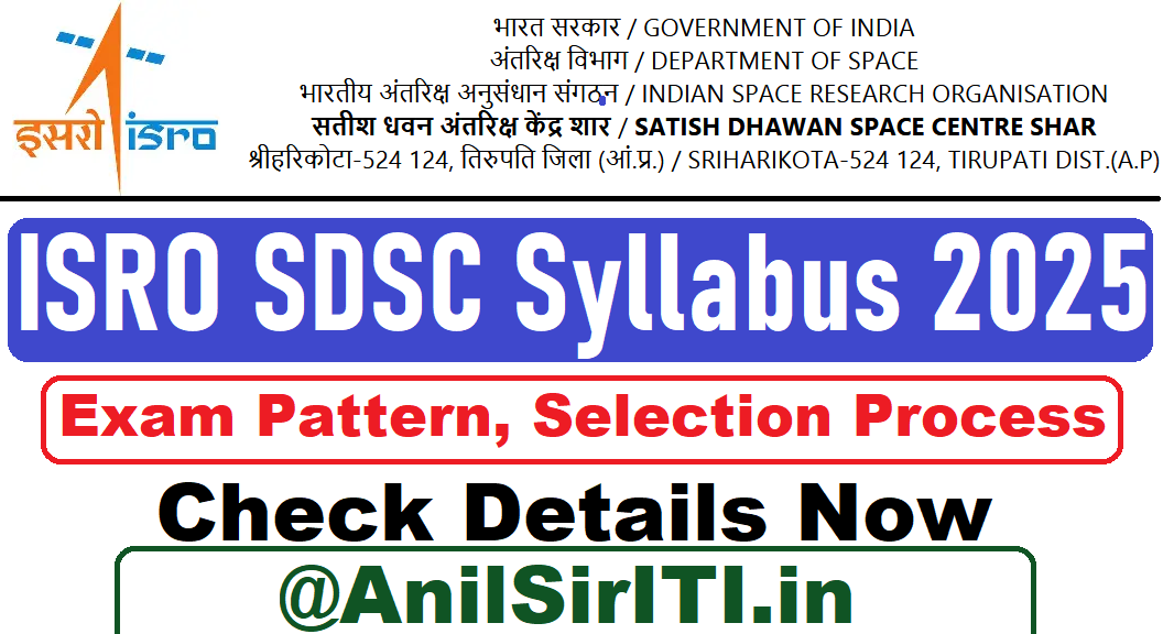 ISRO SDSC Syllabus 2025 : Indian Space Research Organisation – Satish Dhawan Space Centre की ओर से 144 Posts पर Recruitment निकली है जिसका Online form 16/10/2025 से शुरू है | ISRO SDSCS Recruitment 2025 Online form 06/11/2025 तक भरा जायेगा | 10th, ITI, Diploma & Graduate Pass in various candidates ISRO SDSCS Recruitment 2025 online form भर सकता है | ISRO SDSCS Syllabus 2025 नीचे दिया गया है I Latest Update के लिए AnilSirITI Group Join करके रखे I