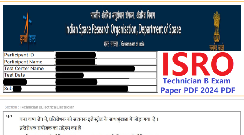 ISRO Technician B Exam Paper 2024: Space Research Organization U R Rao Satellite Centre और ISRO Telemetry Tracking & Command Network की ओर से 10th, ITI, Diploma, B.Sc. M.Tech, PG Candidates के लिए Recruitment निकली है जिसका Online form 27th Jan 2024 से भरना शुरू हुआ था | ISRO URSC Recruitment Online form 16th Feb 2024 तक भरा गया | ISRO URSC Recruitment Scientist/ Engineer, Technical Assistant, Scientific Assistant, Library Assistant, Technician-B, Draughtsman-B, Fireman-A, Cook, Light Vehicle Driver ‘A’, and Heavy Vehicle Driver ‘A’ Post पर आई हुई थी | ISRO URSC Recruitment के लिए total 85062 form भरे गये | ISRO URSC Recruitment Exam 18-04-2024 को हुआ था |ISRO URSC 18-04-2024 के Technician B Exam के कुछ Trade का Paper निचे दिया गया है |