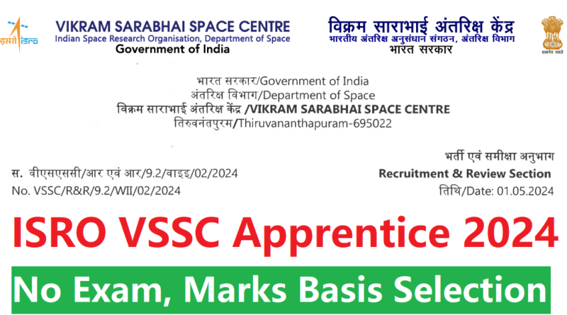 ISRO VSSC Apprentice Recruitment 2024, 08.05.2024 last date