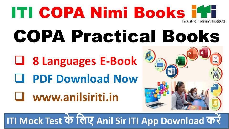 ITI COPA NIMI Practical Book PDF Download: ITI 1st Year COPA के लिए Nimi Books का Link निचे दिया गया है | ITI NIMI Practical Books COPA Trade का दिया हुआ है | अगर आप ITI 1st Year COPA Exam की तैयारी कर रहे हैं या अन्य exam की तैयारी कर हैं तो ये ITI NIMI Based COPA Practical Book आपके बहुत काम आयेगी | ITI COPA Practical Book DGT के Syllabus के आधार पर बनाया जाता है | ITI Exam की तैयारी के लिए Mock Test के लिए Anil Sir ITI App download करें | ITI की latest Update के लिए Anil Sir ITI Telegram और Anil Sir ITI Whatsapp Channel से जरुर जुड़ें | निचे दिए गये link से ITI COPA 1st Year के अलग अलग भाषाओँ के Practical Book Download करें |
