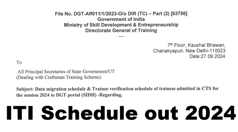 ITI DGT Data Migration & Trainee Verification Schedule 2024 Out