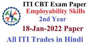 आईटीआई का एम्प्लोयाबिलिटी स्किल्स एक ऐसा विषय है जो आईटीआई के सभी ट्रेड में कॉमन होता है | जिन आईटीआई के छात्रो ने आईटीआई में 2019 के बाद नामांकन कराया है उन्हें द्वितीय वर्ष में भी एम्प्लोयाबिल्टी स्किल्स की परीक्षा देनी होगी | जिसकी पूरी syllabus, CBT Exam Paper, Modal Paper, Video Classes, Mock Test देख सकते हैं |
