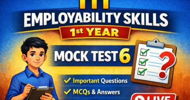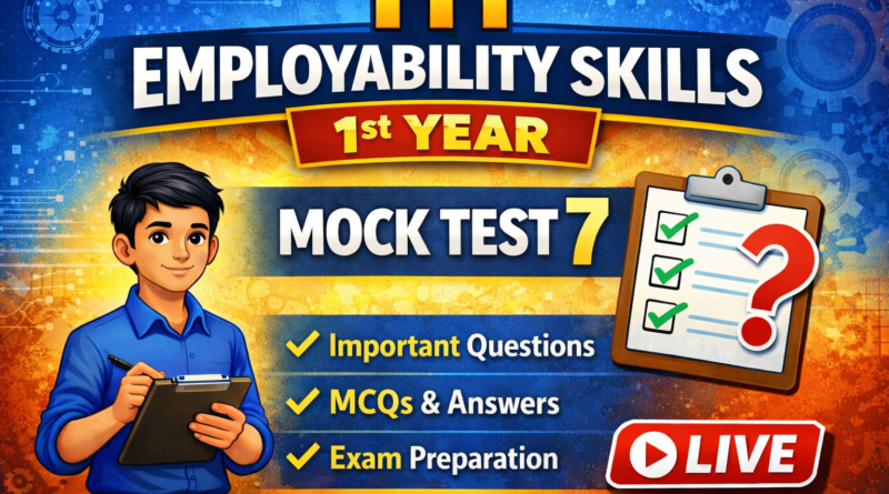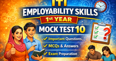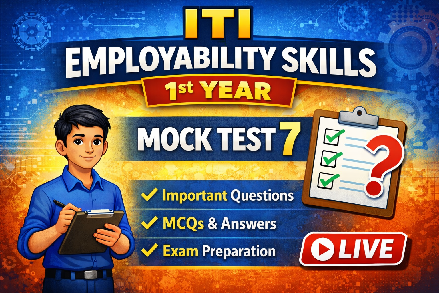 ITI Mock Test ITI Employability Skills 1st Year Mock Test 7 Live Share with your friendsITI Employability Skills 1st Year Mock Test 7 Live: ITI All Trades के लिए Employability Skills 1st Year Mock Test 7 live शुरू कर दिया गया है |ITI Employability Skills 1st YearLesson: Naming Words / नाम शब्द61. Question: English is a ______ language. A) Common B) Day C) Night D) Evening62. Question: Using Internet is easy if we learn _______. / इंटरनेट का उपयोग करना आसान है अगर हम _______ सीखें। A) Sports / खेल B) English / अंग्रेजी C) Maths / गणित D) Science / विज्ञान63. Question: We can learn English by _______. / हम अंग्रेजी _______ द्वारा सीख सकते हैं। A) Cooking / खाना पकाना B) Playing / खेलना C) Reading newspaper / समाचार पत्र पढ़ना D) None of these / इनमें से कोई नहीं64. Question: Tom tries to read the name boards, advertisements, and posters that are in English. This helps him to _________. / टॉम अंग्रेजी में लिखे नाम बोर्ड, विज्ञापन और पोस्टर पढ़ने की कोशिश करता है। इससे उसे _______ में मदद मिलती है। A) Play / खेलने में B) Friends / दोस्त बनाने में C) See / देखने में D) Improve his English / अपनी अंग्रेजी सुधारने में65. Question: When people from different states/countries meet officially, _____ is the commonly used language to communicate with each other. / जब विभिन्न राज्यों/देशों के लोग आधिकारिक रूप से मिलते हैं, तो ______ आमतौर पर एक-दूसरे के साथ संचार के लिए उपयोग की जाने वाली भाषा है। A) Latin / लैटिन B) English / अंग्रेजी C) Newspaper / समाचार पत्र D) Action / कार्रवाई66. Question: Words that are used to name people, places, animals, and things are ________. A) Person B) Table C) Naming words D) Key67. Question: Naming words are also called ____. A) Nouns B) Verbs C) Action D) Pronouns68. Question: Bats fly during the night. In this sentence, the word Bat is __________. A) A boring word B) An action word C) A cool word D) A Naming Word69. Question: Ram was asked to measure his cupboard. It was 4 feet tall. Here feet means ___. / राम से उसकी अलमारी को मापने के लिए कहा गया। यह 4 फीट ऊँची थी। यहाँ फीट का मतलब है ___। A) Taste / स्वाद B) Hand / हाथ C) Leg / पैर D) Measurement / माप70. Question: John was travelling by bus to his village. He noted the names of places that he could see on his journey. What are these words called as? / जॉन अपने गांव की ओर बस से यात्रा कर रहा था। उसने अपनी यात्रा के दौरान देखे गए स्थानों के नाम नोट किए। इन शब्दों को क्या कहा जाता है? A) Naming words / नाम शब्द B) His / उसका C) That / वह D) See / देखनाSubmit Quiz Join UsDownload App