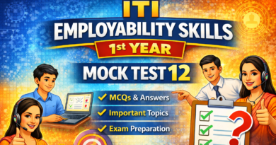 ITI Employability Skills 1st Year – Mock Test 9 Live : ITI 1st Year के सभी Trade के छात्रों के लिए Employability Skills का Mock Test Set 9 Live हो चुकी है | Anil Sir ITI App से Employability Skills mock test pdf and Question Bank download कर सकते है |
