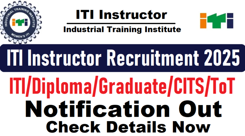 ITI Instructor Recruitment 2025, ITI/Diploma/Graduate/CITS/ToT Pass Latest Vacancy 2025, 20/08/2025 Last Date