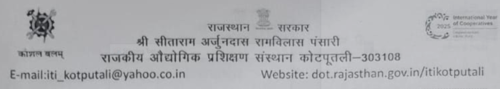 ITI Instructor Recruitment 2025 : Industrial Training Institute (ITI) की ओर से 15 Posts पर Recruitment निकली है जिसका Offline form 14/08/2025 से शुरू है | ITI Instructor Recruitment 2025 Offline form 20/08/2025 तक भरा जायेगा | ITI/Diploma/Graduate/CITS/ToT Pass in various candidates ITI Instructor Recruitment 2025 offline form भर सकता है | जिसका Interview Date 21 August 2025 , सुबह 10:00 बजे है|ITI Instructor Recruitment में शामिल हो सकते हैI आपकी Walk-In-Interview Location – Rajkiya Audhogik Prakshid Santhan Kotputli – 303108 रहने वाला हैI Interested and eligible candidates ITI Instructor Recruitment 2025 form भर सकते हैं | ITI Instructor Recruitment Full Notification निचे दिया गया हैI ITI Instructor Recruitment Official Website निचे दिया गया है I