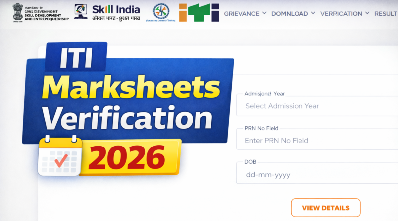 ITI Marksheet Verification 2026 : ITI Marksheet Verification 2026 की प्रक्रिया के माध्यम से उम्मीदवार अपनी ITI (NCVT) मार्कशीट और सर्टिफिकेट की ऑनलाइन जांच कर सकते हैं। यह सुविधा विशेष रूप से नौकरी, अप्रेंटिसशिप, या दस्तावेज सत्यापन (DV) के समय उपयोगी होती है। उम्मीदवार अपने रजिस्ट्रेशन नंबर / रोल नंबर की मदद से आधिकारिक पोर्टल पर लॉगिन करके मार्कशीट की वैधता (Authenticity) और स्टेटस चेक कर सकते हैं। यह प्रक्रिया Directorate General of Training (DGT) के अंतर्गत NCVT MIS पोर्टल पर उपलब्ध होती है, जहाँ से ITI Pass उम्मीदवार अपनी डिजिटल सर्टिफिकेट और मार्कशीट का सत्यापन कर सकते हैं।