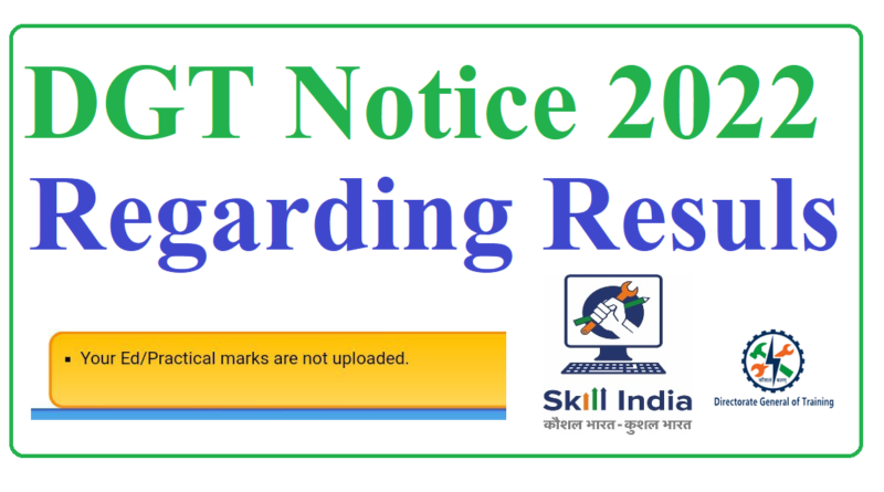 DGT ने एक notice जारी किया है जिसमे अगर किसी candidates का रिजल्ट check करते वक्त ये बताया जाता है “Engineering /Practical Marks not uploaded’ तो उनका Engineering Drawing और Practical का मार्क्स upload करने की अंतिम तिथि 12.03.2022 से 22.03.2022 रखी गयी है | Nodal आईटीआई से अनुरोध किया गया है की वो अपने nodal क्षेत्र में आने वाले सभी आईटीआई का मार्क्स upload करें | अभी 22.03.2022 तक का समय दिया गया है | अगर आपका Result check करने पर “ED/Practical Marks not upload” लिखा आ रहा है तो जल्द से जल्द आईटीआई से संपर्क करिये | आपकी आईटीआई nodal आईटीआई से संपर्क करके आपका मार्क्स अपलोड करेगी तभी आपका result जारी किया जायेगा |