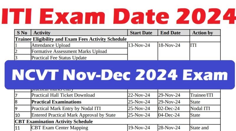 NCVT ITI CBT Examination Activity Schedule Nov-Dec 2024