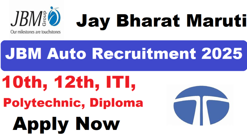JBM Auto Recruitment Qualification 2025 10th / 12th , ITI Pass in recognized Institute (NCVT/SCVT). Polytechnic Diploma Pass in recognized Institute.