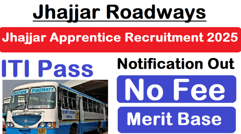 Jhajjar Apprentice Recruitment 2025 : Haryana Roadways Jhajjar की ओर से 32 Posts पर Recruitment निकली है जिसका Online form 21/03/2025 से शुरू है|Jhajjar Apprentice Recruitment 2025 Online form 25/03/2025 तक भरा जायेगा | ITI Pass in various candidates Jhajjar Apprentice Recruitment online form भर सकता है | Interested and eligible candidates Jhajjar Apprentice Recruitment form भर सकते हैं |Jhajjar Apprentice Recruitment Full Notification निचे दिया गया हैI Jhajjar Apprentice Recruitment 2025 Apply Link निचे दिया गया है I