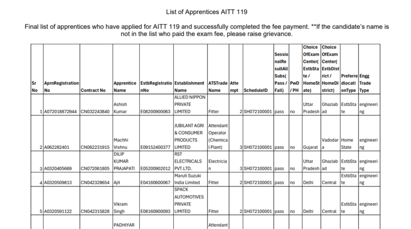 List of Apprentices AITT 119 @apprenticeshipindia.gov.in