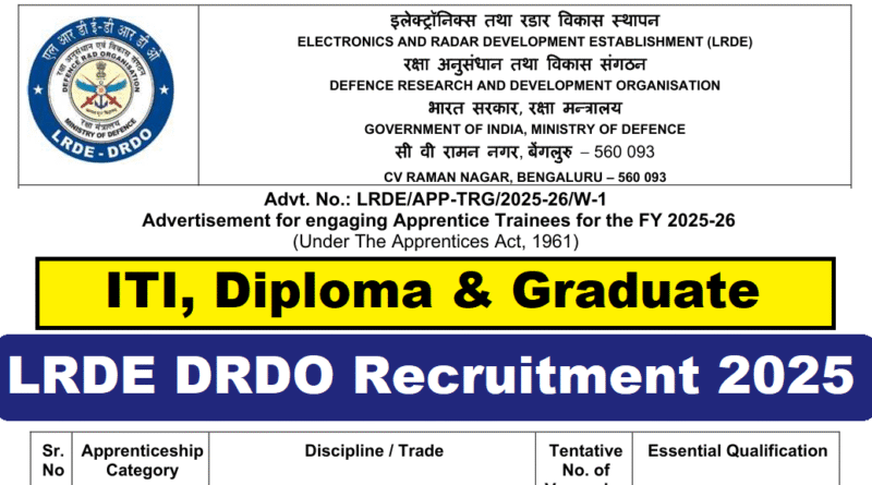 LRDE DRDO Recruitment 2025, ITI, Diploma & Graduate Pass Latest Vacancy 2025