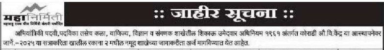 MAHAGENCO Recruitment Qualification 2024 Candidates Completed their degree & Diploma in Engineering various trade in relevant field from recognized University. Bachelor Of ART Science & Commerce or Computer Science in relevant field from recognized University. MAHAGENCO Recruitment Age Limit 2024 Minimum Age Check Notification Maximum Age Check Notification