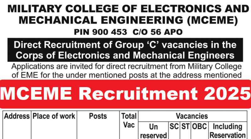 MCEME Recruitment 2025, 10th, 12th & Graduate Pass Latest Vacancy 2025, 14/11/2025 Last date