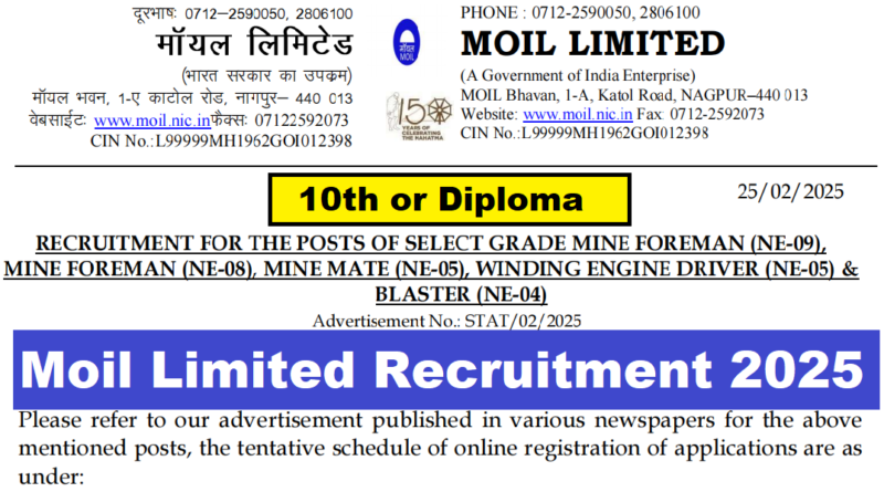 Moil Limited Recruitment 2025, 10th & Diploma Pass Latest Vacancy 2025, 25/03/2025 Last Date