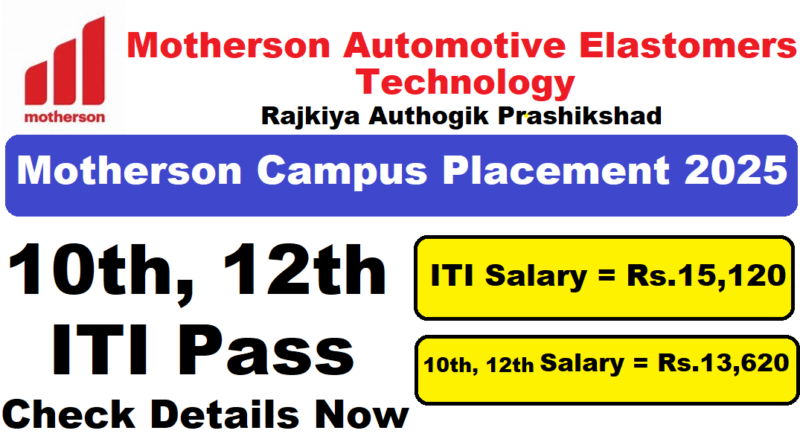 Motherson Campus Placement 2025 : Motherson Automotive Elastomers Technilogy (MAET) की ओर से Electrician, Tractor mechanic, diesel Mechanic, Machanist, MMV, Turner, Welder, Fitter Posts पर Campus Placement निकली है जिसका Interview Date 20 March 2025, सुबह 10:00 बजे है|10th, 12th, ITI Pass in various candidates Offline Campus Placement में शामिल हो सकते हैI आपकी Campus Placement Location – D-14, Sector – 59 Noida, UP रहने वाला हैI Motherson Campus Placement 2025 Full Notification निचे दिया गया है |