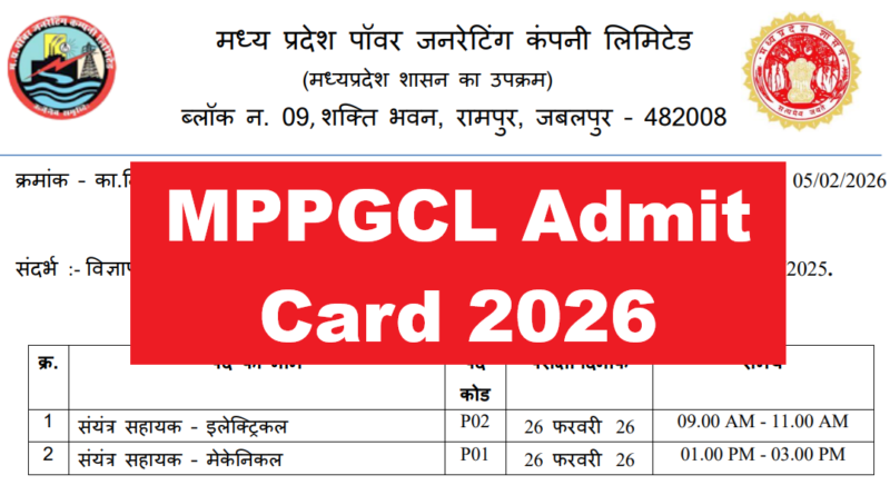 MPPGCL Plant Assistant Admit Card 2026: Madhya Pradesh Power Generating Company की ओर से ITI Pass candidates के लिए Plant Assistant Posts की Recruitment निकली थी जिसका Online form 30-12-2025 तक भरा गया था | MPPGCL Plant Assistant Recruitment Exam Date 2026 जारी कर दिया गया है | MPPGCL Plant Assistant Recruitment Exam 26 Feb 2026 को हुआ था | MPPGCL Plant Assistant Written Exam का Admit card 2026 16 Feb तक जारी किया जायेगा | MPPGCL Plant Assistant Admit Card 2026 की जानकारी जैसे ही आती है तो Anil Sir ITI Telegram पर दिया जायेगा इसलिए Anil Sir ITI Telegram channel join करें |
