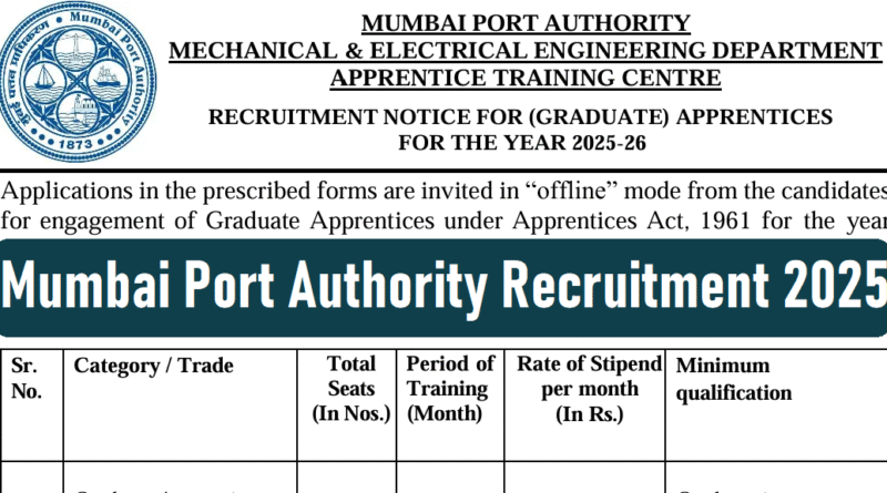 Mumbai Port Authority Recruitment 2025, Mechanical & Electrical Engineer Posts Latest Vacancy 2025, 10/11/2025 Last Date