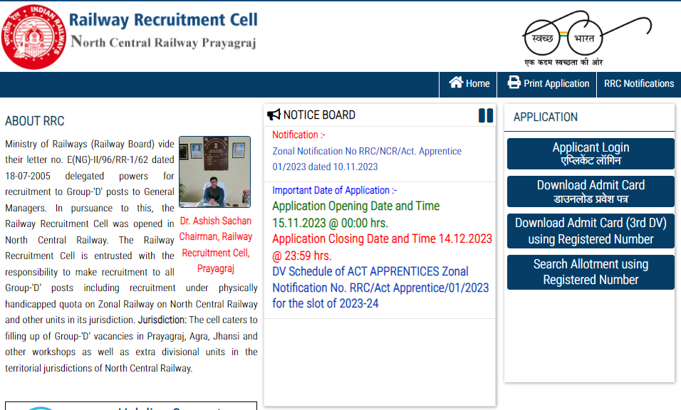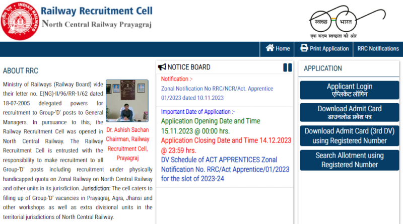 RC NCR Prayagraj Apprentice DV Address and Date 2023