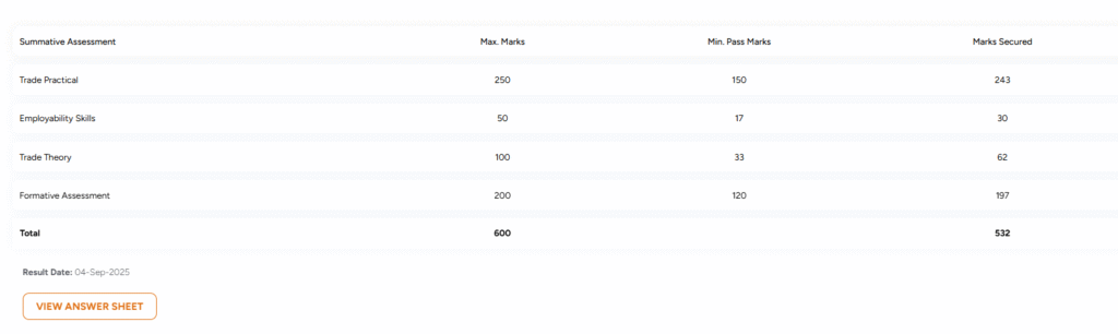 - After submitting, you will see the option of ITI Result then click to Check button and you see Answeer sheet