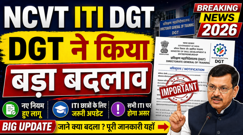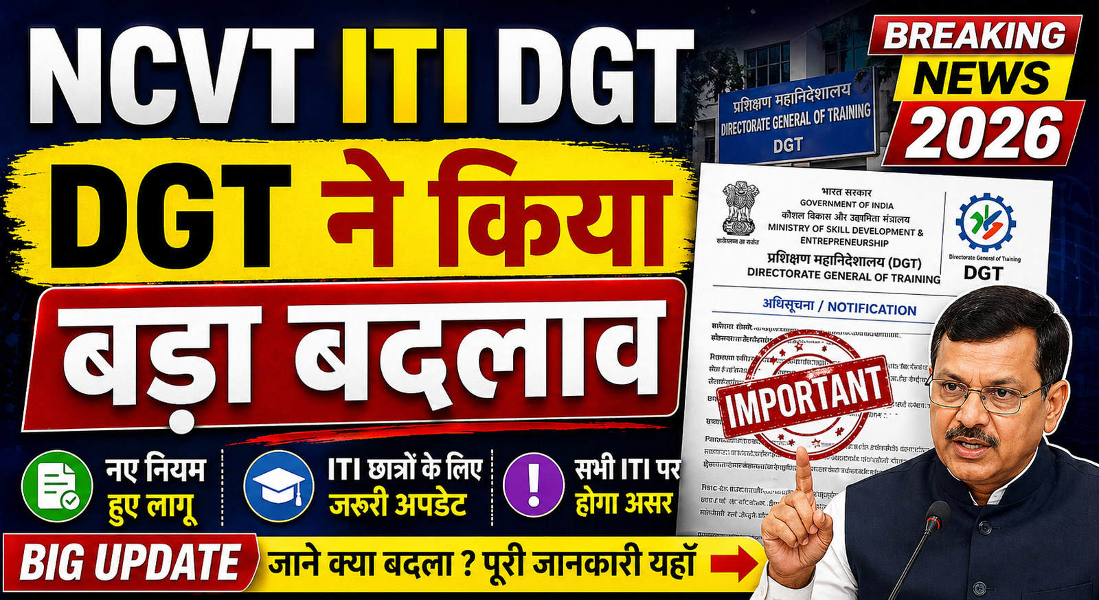 NCVT ITI DGT Breaking News 2026: ITI CTS Marksheet & Certificate Changes 2025: प्रशिक्षण महानिदेशालय (DGT), कौशल विकास एवं उद्यमशीलता मंत्रालय (MSDE), भारत सरकार ने Craftsmen Training Scheme (CTS) के तहत ITI में प्रशिक्षण लेने वाले trainees के लिए तीन बड़े बदलाव लागू किए हैं। ये बदलाव Admission Year 2025 से प्रभावी हैं और इनमें शामिल हैं — Result Status में बदलाव, नया e-NTC Certificate Format जिसमें APAAR ID जुड़ेगी, और नई e-Marksheet जिसमें OJT के Grades दिखेंगे। सभी latest ITI updates के लिए AnilSirITI.in पर visit करते रहें।