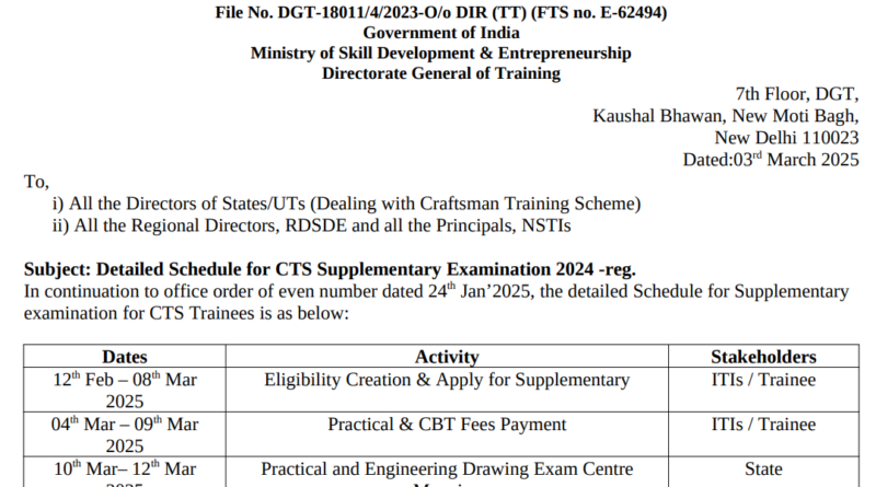 NCVT ITI Supplementary Exam 2025 Schedule Out @ncvtmis.gov.in