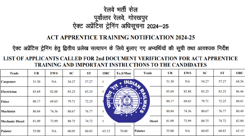 NER Gorakhpur Apprentice 2nd Cut off 2024