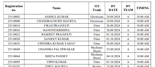 Following candidates have been called for Document Verification, found eligible on the basis of the details furnished in the online application form