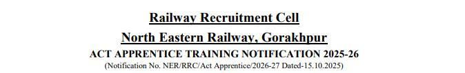 | Notification No. | NER/RRC/Act Apprentice/2026-27 Dated: 15.10.2025 |