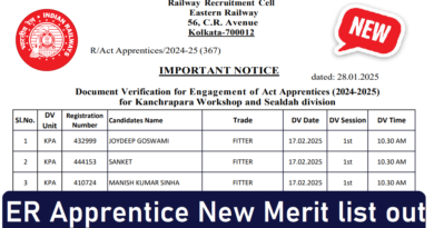 Candidates may download their Call Letter for Document Verification from NE Railway’s website www.ner.indianrailways.gov.in 10 days prior to scheduled date.