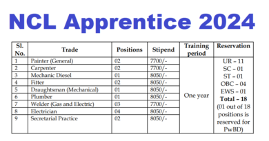 | 2. Apprentice for various Trade | ITI Pass in respective Trade (NCVT/SCVT) (Regular Mode) |