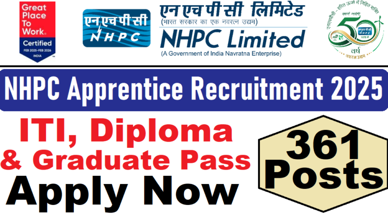 NHPC Apprentice Recruitment 2025, 361 Vacancies, ITI, Diploma & Graduate Pass Latest Vacancy 2025, 11/08/2025 Last Date