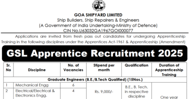 Accommodation: Shared bachelor accommodation may be provided to apprentice at the training location. If accommodation is not provided, then an additional payment of Rs. 2500/- per month will be paid.